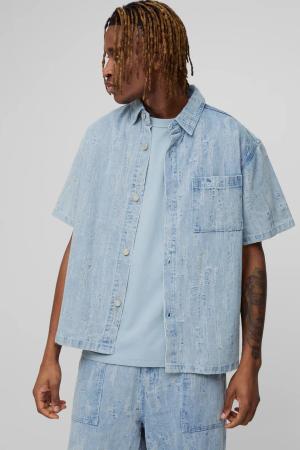 Kurzärmliges Oversize Hemd - Blau - S, Blau