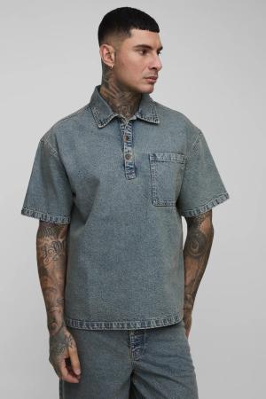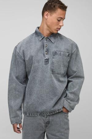 Oversize Denim Rugby-Hemd - Grau - L, Grau