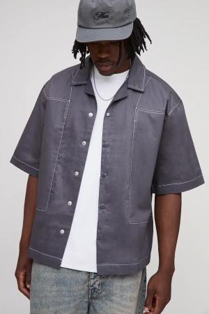 Tall Oversize Hemd mit Kontrast-Naht und halben Ärmeln - Grau - 2XL, Grau