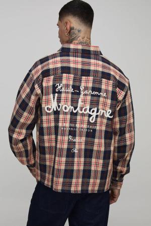 Tall Oversized Club De Ski Embroidered Ribbed Check Overshirt