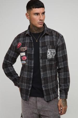 Oversize Karohemd mit Man-Applikation - Grau - S, Grau