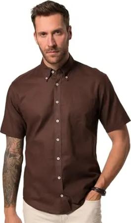 Herren große Größen Übergrößen Menswear L-8XL Hemd, Halbarm, Leinenmix, Buttondown-Kragen, Modern Fit pinienbraun 6XL 782692110-6XL