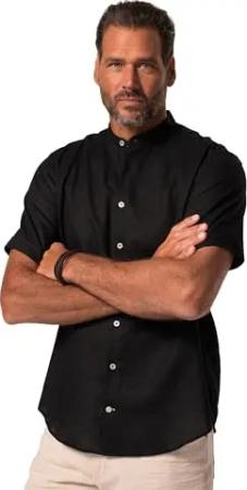 Herren große Größen Übergrößen Menswear L-8XL Hemd, Halbarm, Leinenmix, Stehkragen, Modern Fit schwarz 3XL 815225100-3XL
