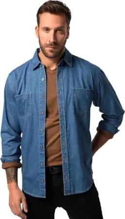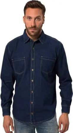 Herren große Größen Übergrößen Menswear L-8XL Hemd, Langarm, Cowboy, Kentkragen, Modern Fit Blue Denim XL 828798902-XL