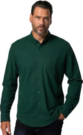 Herren große Größen Übergrößen Menswear L-8XL Piquéhemd, Langarm, Mini-Buttondown-Kragen, Modern Fit dunkelgrün 8XL 831506450-8XL