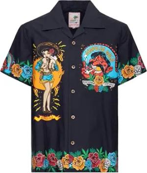 Herren Hawaii Hemd · Hawaiian Shirt · Artwork · Print · Mexico · Pinup · Retro · Vintage · Rockabilly · 50s · Kurzarm · Reverskragen · Biker · Trucker · Acapulco Gold