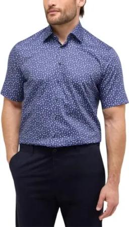 Herren Kurzarm Hemd Modern Fit | Struktur Dunkelblau | 100% Baumwolle | Kent-Kragen Gr. 41