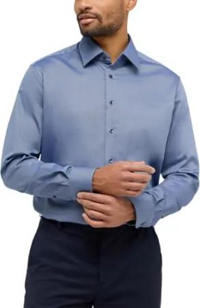 Modern Fit Cover Hemd Langarm New Kent Kragen Blickdicht blau
