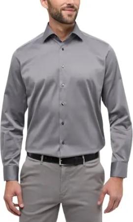 Herren Hemd Modern Fit | Satin Anthrazit | 100% Baumwolle | Kentkragen Gr. 44