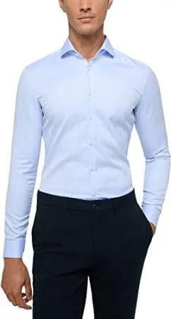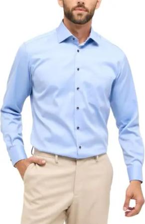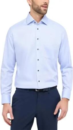 Comfort Fit Cover Hemd Langarm Blickdicht Struktur hellblau Größe 41