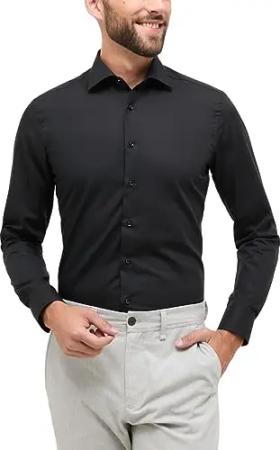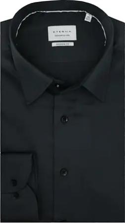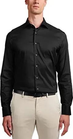 Herren Langarmshirt Slim Fit Performance Shirt Stretch Schwarz Uni Hemd, Kragenweite: 45