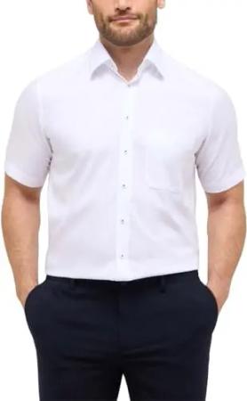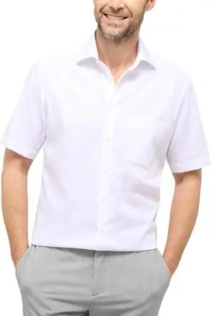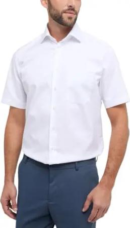 Herren Kurzarm Hemd Comfort FIT | Struktur Weiß | Patch | 100% Baumwolle | Kentkragen Gr. 45