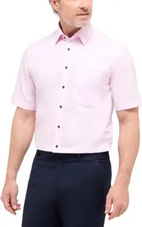 Herren Kurzarm Hemd MODERN FIT | Struktur Rosa | 100% Baumwolle | Kentkragen Gr. 45