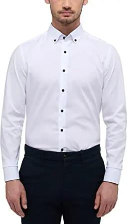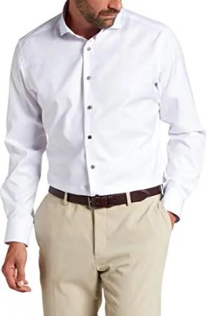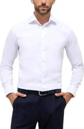 Modern Fit Hemd Langarm Haifischkagen weiß Größe 42