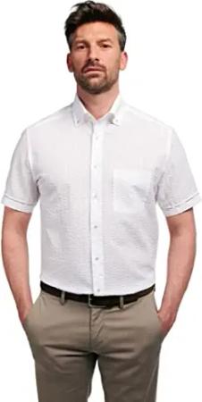 Kurzarm Hemd Regular fit Seersucker, unifarben Größe 46, Farbe weiß
