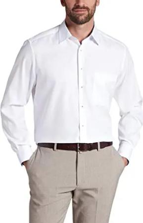 Herren Langarm Hemd Comfort FIT | Weiß mit Ausputz | Bügelfrei I 100% Baumwolle | Kentkragen Gr. 49