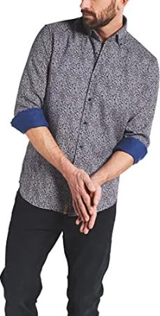 Herren Hemd Modern Fit | Langarm | Navy Bedruckt | Twill | 100% Baumwolle | Kentkragen Gr. 45