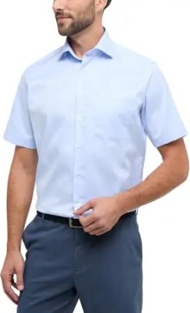 Herren Kurzarm Hemd MODERN FIT | Struktur Hellblau | 100% Baumwolle | Kentkragen Gr. 44