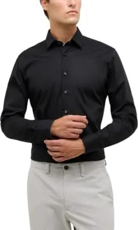 Slim Fit Hemd Langarm New Kent Kragen Popeline schwarz