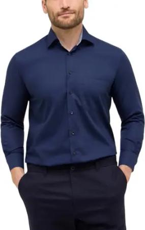 Herren Langarm Hemd | Slim FIT | Navy-Blau | Bügelfrei, Knitterfrei | Uni Popeline | Dynamic Cotton™ | 100% Baumwolle | Kentkragen mit Ausputz Gr. 44
