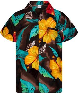 Funky Hawaii-Hemd, Herren, Kurzarm, Big-Flower, Braun, M