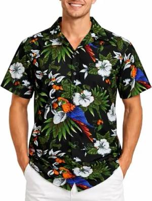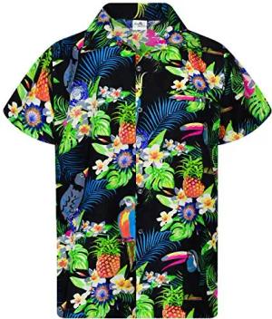 Funky Hawaii-Hemd, Herren, Kurzarm, Parrot-Cockatoo, Schwarz, XXL
