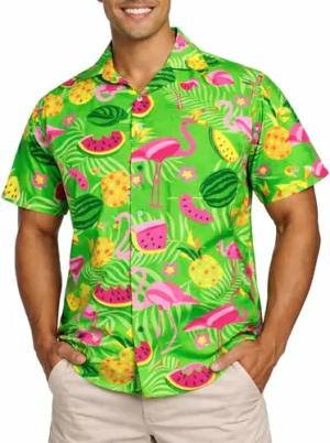 Funky Hawaii-Hemd, Herren, Kurzarm, Flamingo-Melon, Grün, 7XL