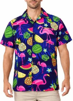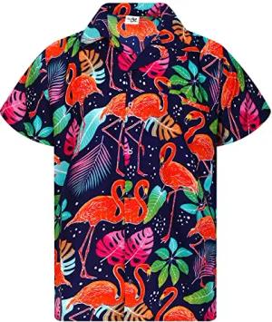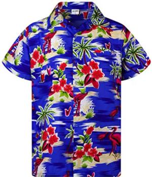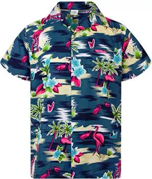 Funky Hawaii-Hemd, Herren, Kurzarm, Funky-Flamingos, Blau, L