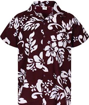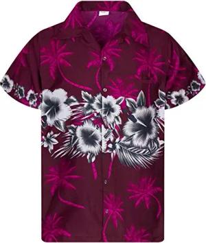 Funky-Hawaii-Hemd, Herren, Kurzarm, Hibiscus, Maroon-Rot, XL