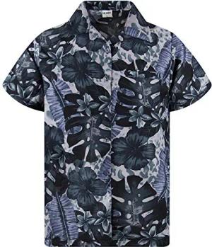 Funky Hawaii-Hemd, Herren, Kurzarm, Leopard-Flowers, Dunkel-Grün, S