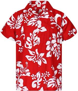 Funky Hawaii-Hemd, Herren, Kurzarm, Flower-Chest, Rot, XXL
