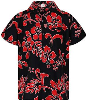 Funky-Hawaii-Hemd, Herren, Kurzarm, Hibiscus, Schwarz-Rot, 7XL