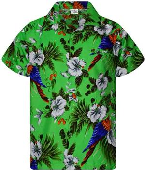 Funky Hawaii-Hemd, Herren, Kurzarm, Parrot-Cockatoo, Hell-Grün, XXL