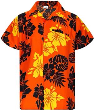 Funky-Hawaii-Hemd, Herren, Kurzarm, Hibiscus, Navy-Orange, 7XL