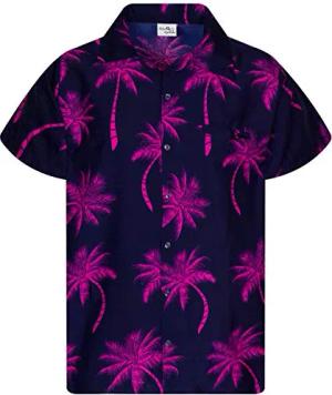 Funky-Hawaii-Hemd, Herren, Kurzarm, Palm-Shadow, Navy-Pink, S