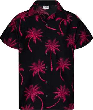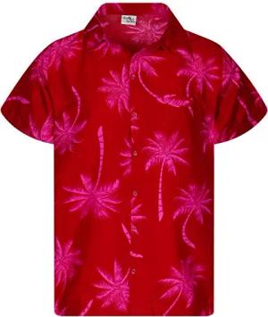 Funky-Hawaii-Hemd, Herren, Kurzarm, Palm-Shadow, Rot-Pink, M