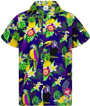 Funky Hawaii-Hemd, Herren, Kurzarm, Parrot-Cockatoo, Dunkel-Blau, XS
