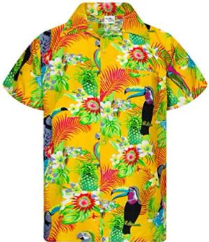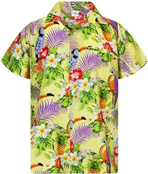Funky Hawaii-Hemd, Herren, Kurzarm, Parrot-Cockatoo, Hell-Gelb, XXL
