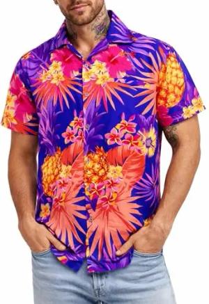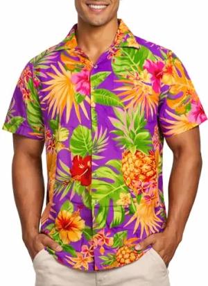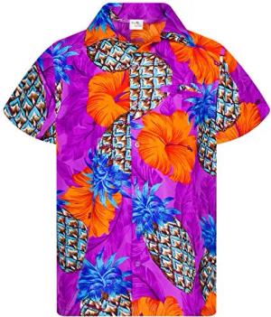 Funky-Hawaii-Hemd, Herren, Kurzarm, Pineapple, Violett, 7XL