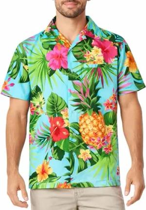 Funky-Hawaii-Hemd, Herren, Kurzarm, Pineapple, Türkis, 7XL