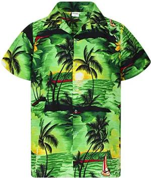 Funky-Hawaii-Hemd, Herren, Kurzarm, Surf, Grün, 7XL