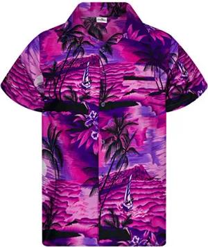 Funky-Hawaii-Hemd, Herren, Kurzarm, Surf, Pink-Violett, 7XL