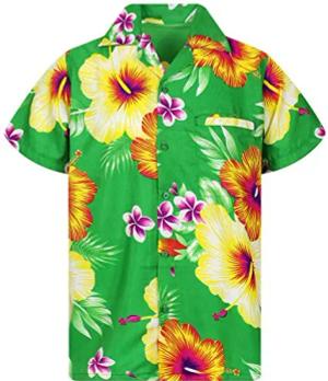 Funky Hawaii-Hemd, Herren, Kurzarm, Flower-Chest, Grün, M