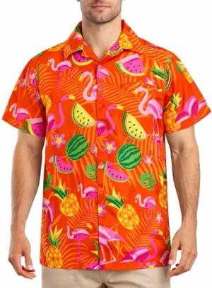 Funky Hawaii-Hemd, Herren, Kurzarm, Flamingo-Flowers, Schwarz-Orange, M