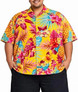 Funky Hawaii-Hemd, Herren, Kurzarm, Leopard-Flowers, Gelb, XXL