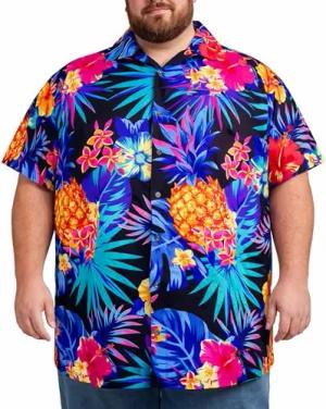 Herren Hawaiihemd Kurzarm, Pineapple, Dunkelblau, 12XL