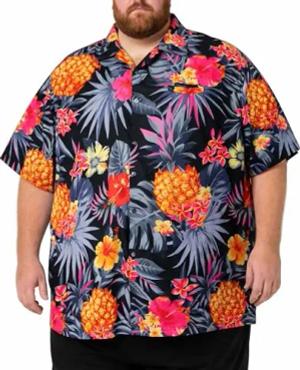 Herren Hawaiihemd Kurzarm, Pineapple, Schwarz/Blau, 7XL