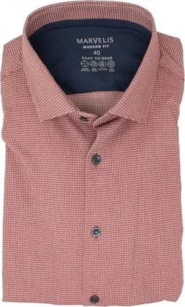 Herren Businesshemd Modern Fit Kent Kragen Langarm Struktur Rot, Kragenweite:45