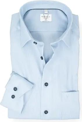 Herren Easy to Wear Hemd Body Fit Kent Kragen Langarm Stretch Struktur Hellblau, Kragenweite:39
