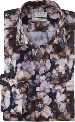 Herren Oberhemd Langarm Level Five,Digitaldruck auf Uni,Level 5,21 New York Kent-2,Marine 18,45